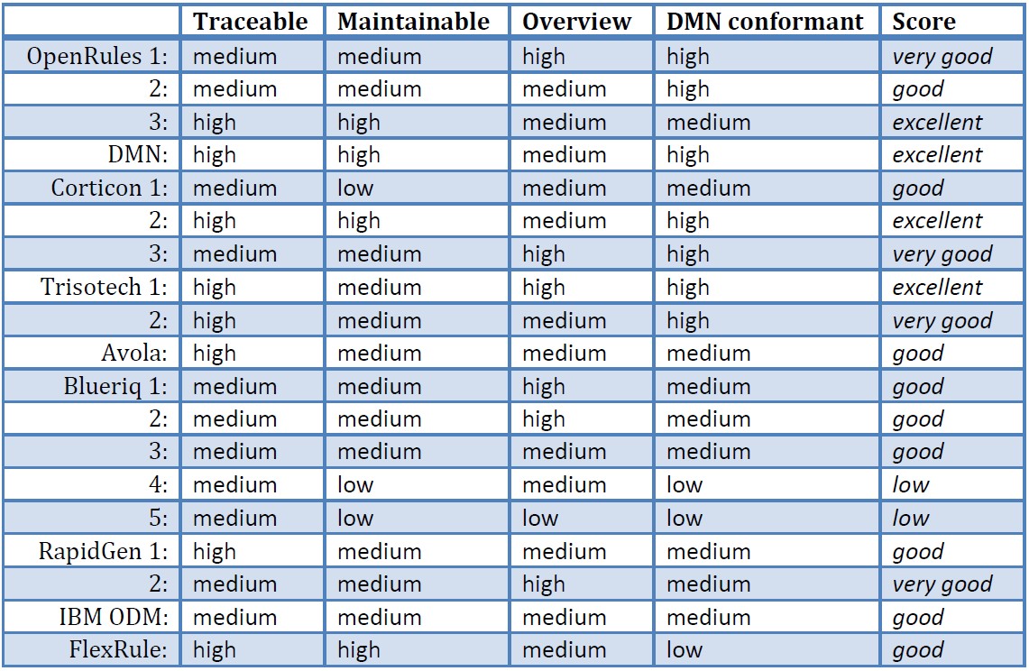 Prof. Jan Vanthienen took time to carefully analyze all 19 solutions submitted for our Jan-2016 Challenge. The results of his analysis are now available in this report. Here is a summary: