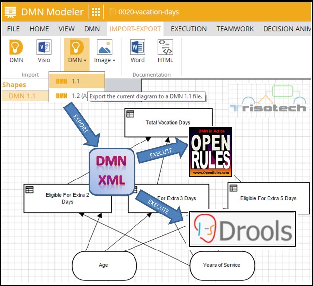 The DMN Standard is already supported by different vendors and it means that real (not theoretical) interchangeability of the same DMN-based business decision models became a reality – see examples at this article. If you attend the RuleML+RR+DecisionCAMP conference in London in July, you will see a live demonstration of how DMN XML decision models can be created using Trisotech or Signavio DMN modelers and then executed by Drools or OpenRules rule engines.
