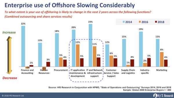A new research shows that enterprise use of offshore outsourcing is slowing considerably in the US with the last election. Highest performing enterprises are replacing traditional IT outsourcing with value-based partnerships. Link