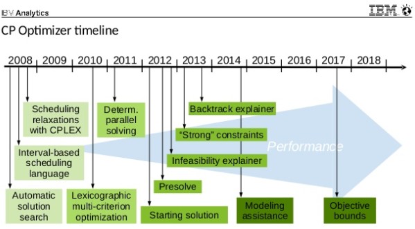 Paul Shaw presented a summary of ten years of evolution of CP Optimizer, one of the most powerful constraint programming engines: