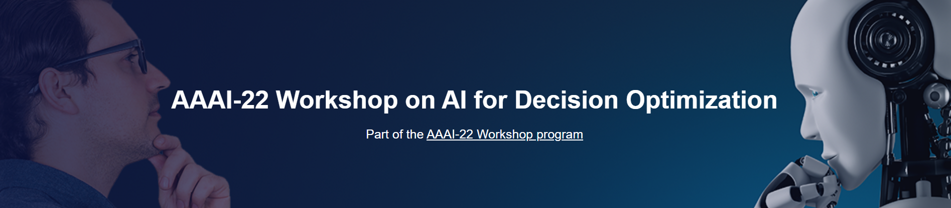 The AAAI-22 workshop on AI for Decision Optimization (AI4DO) will explore how AI can be used to significantly simplify the creation of efficient production level optimization models, thereby enabling their much wider application and resulting business value. The desired outcome of this workshop is to drive forward research and seed collaborations in this area by bringing together machine learning and decision-making from the lens of both dynamic and static optimization models. Link