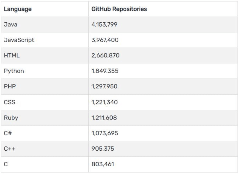 If you are interested in software engineering from a meta trends perspective, here are the most popular programming languages by GitHub repository activity: