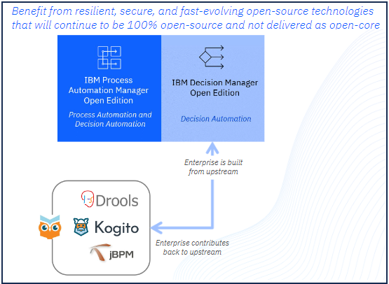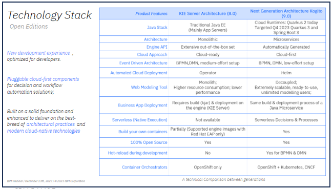 IBM presented BAMOE 9.0 – watch a webinar on Dec 13. It introduces new IBM Decision Manager and Process Automation Manager Open Editions that replace the corresponding Red Hat products: