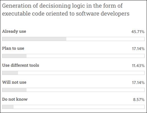 - Generation of decisioning logic in the form of executable code oriented to software developers
